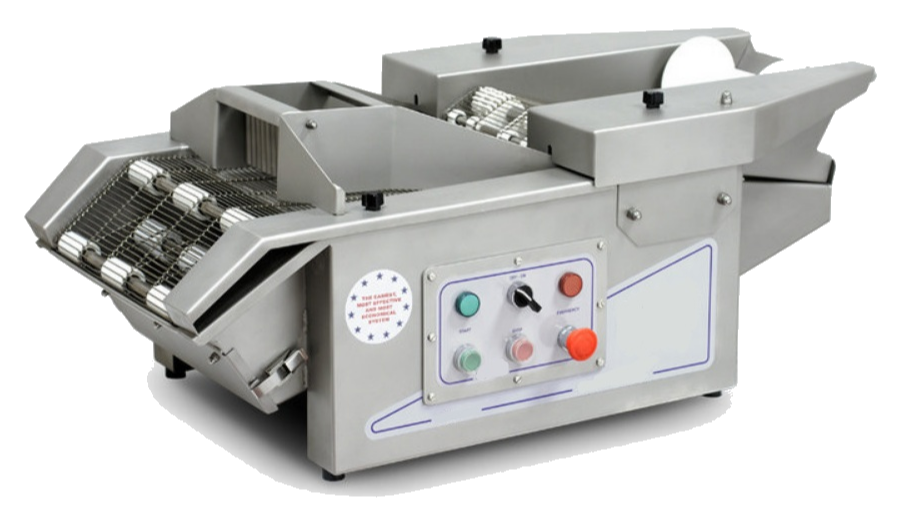 Stolové kompaktné zariadenie na krájanie kuracích pŕs. Vyrába až 300 kg / h. Nakladanie a vykladanie produktu sa vykonáva na jednej strane zariadenia. Vhodný pre menšie cateringové firmy, mäsiarstvá alebo závody na výrobu mäsa. Vyrobené špecificky pre mäsový sektor.