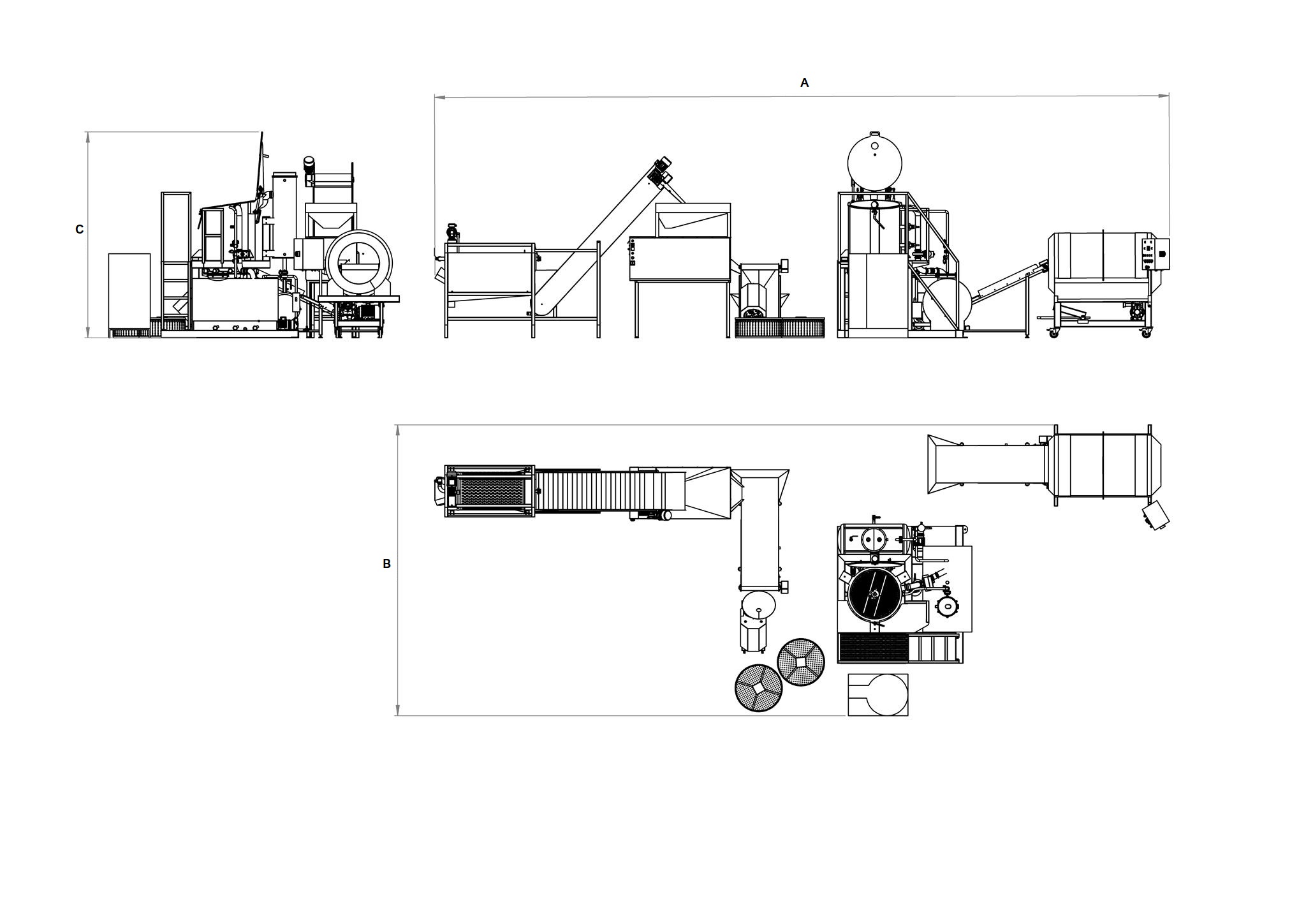 Pozostáva z komplexu kontinuálnych zariadení, ktoré umožňujú procesy ako sú: umývanie zemiakov, čistenie, krájanie, fritovanie vyprážanie.