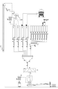 • Zariadenie pre vybalenie vriec . Jednotlivé komponenty, ktoré tvoria zložky suchých zmesí, sú obvykle dodávané v balení. Tieto zariadenia sa skladajú z lievika, ktorý je vybavený grilom a filtrom. Vrecia roztrhne ručne operátor a prach je nasávaný cez filter. Tiež obsahuje vlhkomer.